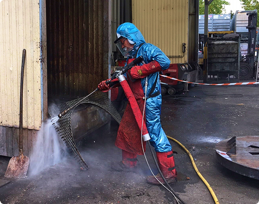 - Au pistolet manuel : idéal pour décaper des surfaces planes, pièces mécaniques, parois métalliques, etc. Précision et maîtrise manuelle.